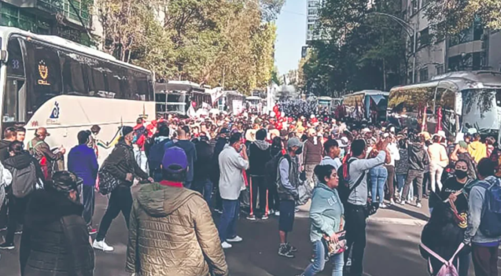 Desde altas horas de la madrugada, los camiones que transportaron de ida y regreso a los asistentes a la marcha se estacionaron en algunas de las avenidas más concurridas de la Ciudad de México.
