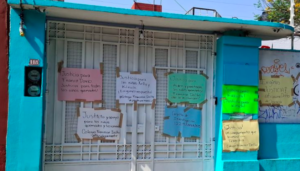 Esta mañana protestaron en el plantel y colocaron en el portón carteles con nombres de los menores lesionados exigiendo a los directivos asumir su responsabilidad.