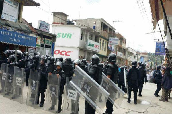 El enfrentamiento se inició alrededor de las 14:00 hora local (19:00 GMT) tras el intento de la Policía Federal por recuperar la una oficina distrital del Instituto Nacional Electoral (INE) que estaba ocupada por los maestros desde el pasado 1 junio.