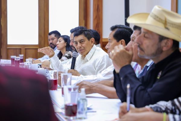 Oaxaca de Juárez, 23 de abril. Autoridades municipales y comunales de San Andrés Teotilálpam, en la Sierra de Flores Magón participaron en la Mesa de Atención Agraria Federal y Estatal encabezada por el Gobernador del Estado Salomón Jara Cruz.