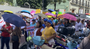 Con pancartas y consignas rechazan esta medida señalando que señalan es un cobro ilegal el que les pretenden hacer.