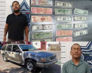 Minutos después lograron darles alcance metros adelante; al hacerles una revisión localizaron 4 billetes de un dólar. 4 billetes de dos y 1 de 5 dólares y a la segunda persona 4 billetes del banco central honduras de 1 lempira ,1 billete del banco de Guatemala de 10 Quetzales Y dos billetes de dos dólares al preguntarles a que se dedicaban y que hacían. tomaron una actitud evasiva y hostil negándose a continuar su revisión.