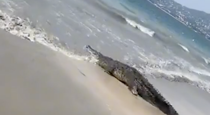 Oaxaca de Juárez, 25 de septiembre. La Coordinación Estatal de Protección Civil y Gestión de Riesgos (CEPCyGR) atiende el reporte del avistamiento de un cocodrilo en la Punta Zicatela, perteneciente al municipio de Santa María Colotepec.