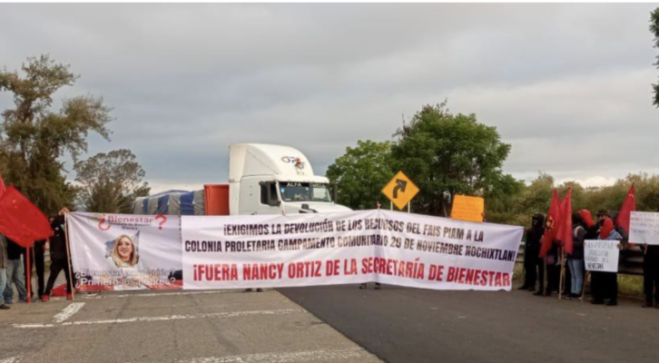Oaxaca de Juárez, 2 de septiembre. Habitantes de la colonia Proletaria Campamento Comunitario 20 de noviembre-FPR, de Asunción Nochixtlán protestan contra la delegada de Bienestar en Oaxaca Nancy Ortiz Cabrera bloqueando la autopista Cuacnopalan-Oaxaca...