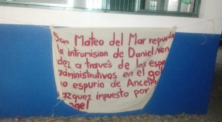 Edwin Meneses San Mateo del Mar, Oax. 2 de enero. Habitantes del municipio de San Mateo del Mar amanecieron este viernes con mantas de inconformidad colocadas en distintos puntos de la comunidad, en las que expresan su rechazo a lo que consideran injerencia...