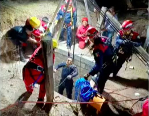 Oaxaca de Juárez, 22 de abril. Elementos del Heroico Cuerpo de Bomberos de Oaxaca (HCBO) realizaron maniobras para recuperar los cuerpos de seis personas que perdieron la vida en el interior de un pozo, en el municipio de Tezoatlán de Segura y Luna,...