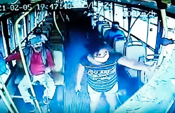 Oaxaca de Juárez, 13 de febrero. Una cámara de seguridad captó el momento en que una mujer apuñaló a un chofer luego de que él le pidiera que usará el cubrebocas dentro del autobús.