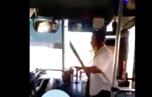 En un video que circula en redes, se puede observar en un primer momento a dos personas dentro de la unidad del transporte urbano que se hacen de palabra con el chofer, los dos visten pantalón negro con una camisa holgada de color blanco, uno de ellos con una chamarra.