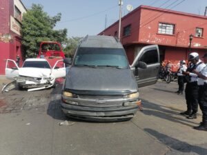 El choque entre una camioneta y un auto compacto se dio en la calle Guerrero, esquina Xicoténcatl en el centro de la ciudad capital.