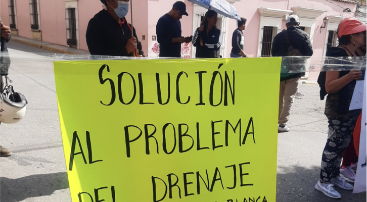 Vecinos de San Martín Mexicapam exigen a Soapa atención, bloquean la calle de Crespo (10:30 h)