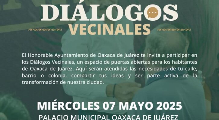 Invita Municipio de Oaxaca de Juárez a participar en los Diálogos Vecinales (18:45 h)