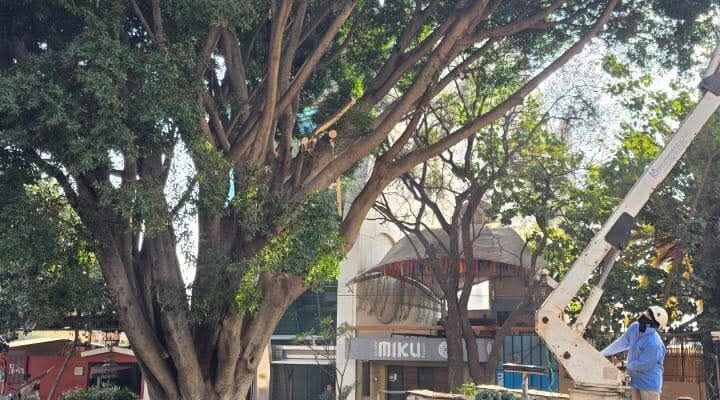 Se realizan trabajos de poda y limpieza para mantener en buen estado los espacios públicos de Oaxaca de Juárez (19:00 h)