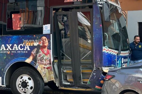 Choque en avenida Juárez y Morelos, Citybus choca con camioneta en el Centro Histórico (16:13 h)
