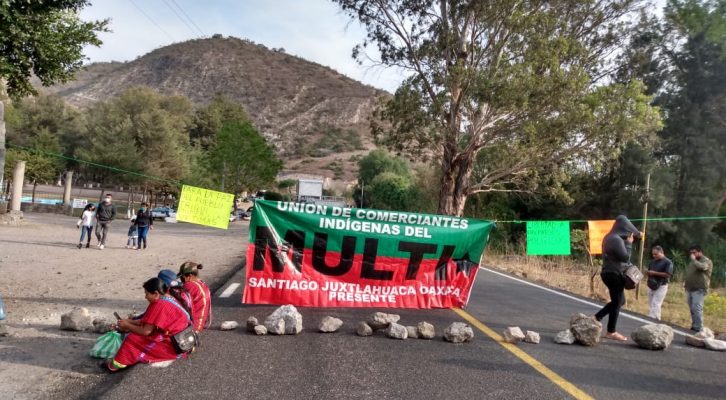 En el bloqueo de la vía Huajuapan-Oaxaca, a la altura de la desviación a Tezoatlán, se encuentra un grupo de personas que supuestamente fueron desplazadas de San Andrés Yutatio, quienes a través de las pancartas que portaban, pedían el retorno seguro a su comunidad.