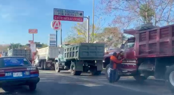 Oaxaca de Juárez, 1 de marzo. Transportistas materialistas y taxis foráneos se concentran sobre la carretera 190 a la altura de la Santa Rosa Panzacola