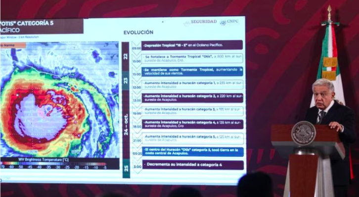 Oaxaca de Juárez, 25 de octubre. Este miércoles, el presidente Andrés Manuel López Obrador confirmó que el huracán “Otis” fue “muy fuerte” y que “tuvo un comportamiento atípico”, con daños que se espera que sean considerables.