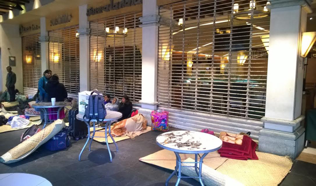 Oaxaca de Juárez, 10 de febrero. El Colectivo de Organizaciones Oaxaqueñas Autónomas (COOA), tomó los restaurantes que se encuentran en los portales alrededor del Zócalo de Oaxaca, para exigir atención de parte del gobierno estatal.