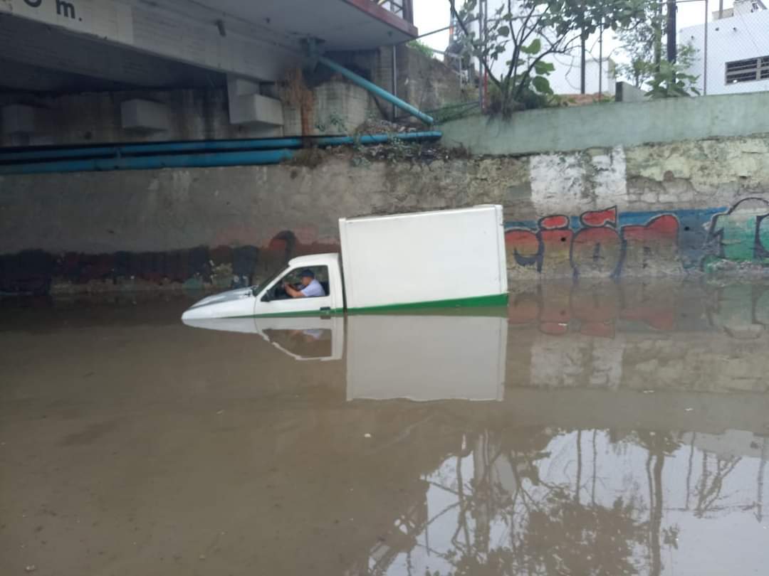 Camioneta queda varada debajo del puente Valerio Trujano (10:00 h)