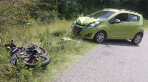 En otro hecho de tránsito, pero en la carretera local 131 conocida como la ruta de la fe, se suscitó un choque entre una motocicleta y un auto compacto en el kilómetro 74 de esa vía que dejó como saldo daños materiales en ambas unidades.