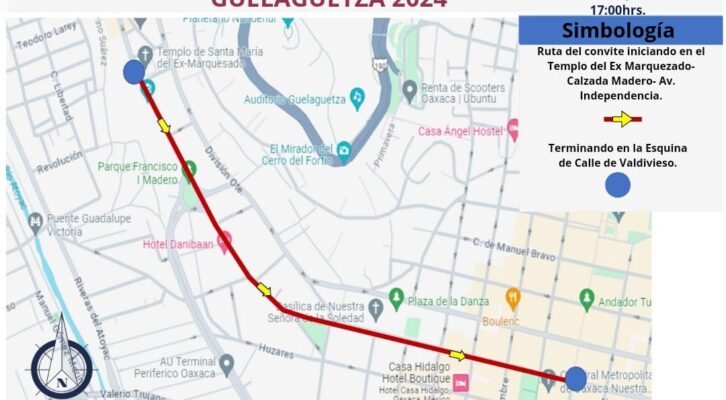 El recorrido partirá del Templo de Santa María del Ex Marquesado, continuará por calzada Francisco I. Madero, integrándose a la avenida Independencia, hasta llegar a la esquina de la calle Doctor Aurelio Valdivieso, por lo que se recomienda a las personas conductoras tomar sus precauciones.