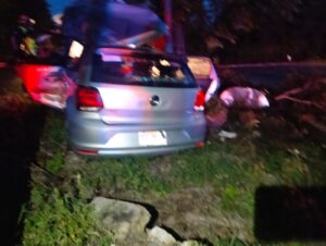 Al arribar como primer respondiente elementos de la Policía Municipal de Huatulco observaron una pequeño automóvil sobre el camellón central con dos personas a bordo sin signos de vida acordonando la zona del percance.