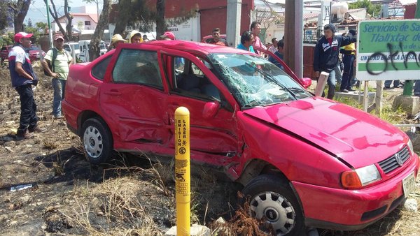 Una de las unidades involucradas es el auto Jetta de color rojo con placas748 PBY del Distrito Federal que fue impactado en su costado derecho y lanzado a un terreno baldío, a orilla de carretera.