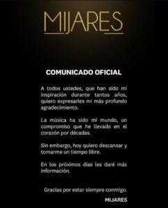 Oaxaca de Juárez, 8 de abril. El soldado del amor, #Mijares anunció su retiro de los escenarios este martes.