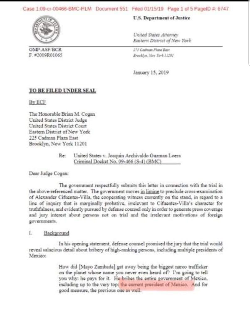 Si algo hizo bien Enrique Peña Nieto al final de su sexenio, fue detener y extraditar a Joaquín “el chapo” Guzmán, porque este personaje en sus declaraciones al Departamento de Justicia de los Estados Unidos, está desenmascarando todo lo que ha pasado con los expresidentes de México y con el actual. Lo que ha dicho Guzmán Loera, clarifica la estrategia “abrazos no balazos” del peje, le da sentido además a la defensa pública que hace el “presidente”, así en minúsculas y entre comillas de los capos de la droga.