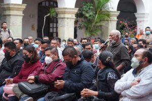 Oaxaca de Juárez, 19 de octubre. Ante la incertidumbre de las y los trabajadores del sindicato 3 de Marzo, por conocer si se privatizará la recolección, así como encontrar un terreno para ir a depositar los residuos sólidos urbanos, el presidente municipal de Oaxaca de Juárez, Francisco Martínez Neri, reiteró que no se privatizará y que la solución de fondo es la separación de lo que llamamos “basura”, de tal manera que podamos garantizar a los pobladores de donde se tendrá el terreno, que no habrá contaminación para el medio ambiente.