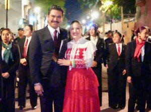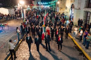 Oaxaca de Juárez, 15 de septiembre. El presidente municipal Ray Chagoya encabezó la Marcha Patriótica que partió del Palacio Municipal hacia el Palacio de Gobierno en donde el gobernador Salomón Jara Cruz presidió la ceremonia del Grito de Independencia de México.