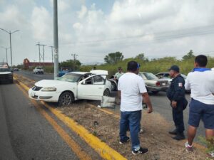 La fuerza del choque proyectó a uno de los autos contra un poste ubicado en el camellón central. El copiloto de un vehículo blanco quedó prensado dentro de la unidad, lo que complicó las labores de rescate.