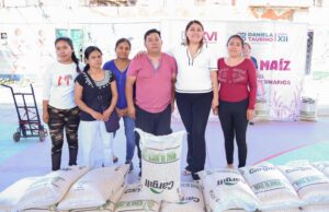 San Raymundo Jalpan, Oax. 15 de octubre. Con el objetivo de seguir impulsando la economía y fortalecer el desarrollo del municipio de Santa del Canino y San Sebastián Tutla, la diputada local del distrito XII, Daniel Taurino entregó bultos de maíz a comerciantes de ambas comunidades.