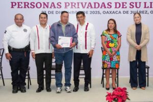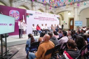 “En Oaxaca creemos en una justicia social que no castiga, sino que escucha a nuestros pueblos y comunidades, entendiendo que la reinserción social es un camino que es posible cuando se garantizan los derechos de todas y todos”, dijo en la ceremonia realiza en Palacio de Gobierno.