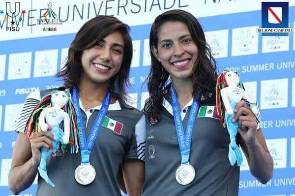Daniela Zambrano, estudiante de la Facultad de Contaduría y Administración de la UNAM, ganó en la Universiada mundial dos platas: clavados sincronizados de diez metros, con su compañera Alejandra Estrella; la otra medalla fue por equipos. La competencia se celebró en Nápoles, Italia. Empezó a practicar clavados a los siete años, tiene 22 años. “Una trayectoria larga, más de la mitad de mi vida le he dedicado a este deporte”.