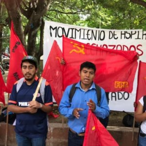 Oaxaca de Ju;arez, 27 de junio. Militantes de la Federación Nacional de Estudiantes Revolucionarios Rafael Ramírez (FNERRR) realizan una valla humana alrededor del kiosco del zócalo de esta capital, para exigir al presidente Andrés Manuel López Obrador la entrega de sus becas.