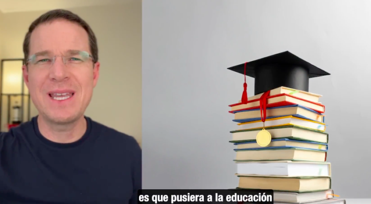 Enseguida, hace una dura crítica a la política educativa del actual gobierno. Argumenta que “lo menos que cabría esperar de cualquier gobierno, es que pusiera a la educación en primerísimo lugar. Por desgracia no es lo que vemos hoy. Para empezar, la educación no es la prioridad en el presupuesto federal. Y ya saben la máxima: prioridad que no se refleja en el presupuesto, no es prioridad”.