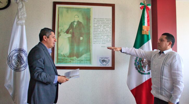 Oaxaca de Juárez, 27 de mayo. El Fiscal General del Estado de Oaxaca, Bernardo Rodríguez Alamilla tomó protesta a Carlos Reyes Sánchez como nuevo Vicefiscal Regional del Istmo, en el marco de una estrategia integral de reingeniería institucional.