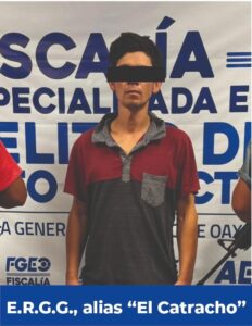 Debido a esto la FGEO inició las indagatorias, además de realizar labores de inteligencia criminal en las que participaron personal de la Fiscalía Especializada para la Atención a Delitos de Alto Impacto y la Agencia Estatal de Investigaciones, logrando la detención de E.R.G.G., alias “El Catracho”, quien fue presentado ante la autoridad correspondiente por el delito de homicidio calificado, para que se determine su situación jurídica.
