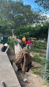 Ante la situación, personal de Parques y Jardines realizó labores de retiro, mientras que elementos de Protección Civil y del Heroico Cuerpo de Bomberos acordonaron el área para prevenir accidentes.