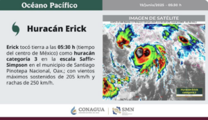 Oaxaca de Juárez, 19 de junio. En el noticiero “Despierta”, de N+, el gobernador de Oaxaca, Salomón Jara Cruz informó que en la entidad se registran inundaciones, caídas de postes y árboles; fallas en la luz eléctrica, derrumbes en carreteras y más daños provocados por el huracán #Erick.