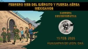 Oaxaca de Juárez, 25 de enero. Con participación de las categorías libre, máster y veteranos, tanto para la rama femenil como varonil, el domingo 15 de febrero en Huajuapan de León, se efectuará la “Gran carrera atlética” de 6 kilómetros, con el objetivo de celebrar con orgullo el día del Ejército y la Fuerza Aérea Mexicana.
