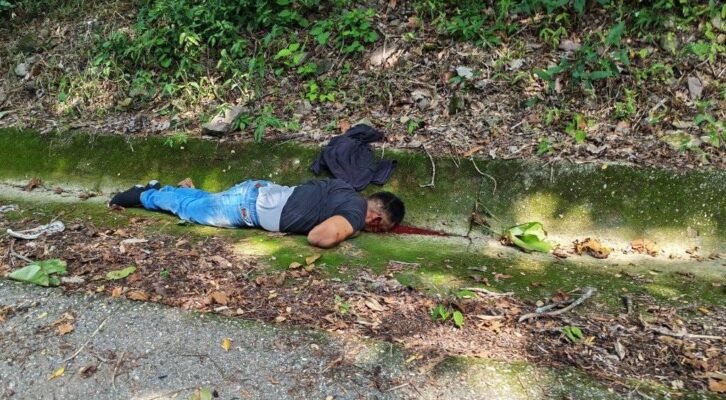 La víctima que viste pantalón de mezclilla color azul, playera y tenis de color negro, fue encontrado tirado en la carretera boca abajo.