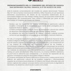 Pronunciamiento del Congreso de Oaxaca respecto a la comercialización del calzado “Oaxaca Slip-On” de Adidas (12:30 h)