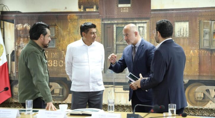 Oaxaca de Juárez, 7 de mayo. El Gobernador Salomón Jara Cruz participó en una reunión de trabajo con funcionarios federales para avanzar en la construcción de Ciudad Salud IMSS-ISSSTE, bajo el firme compromiso de garantizar a las y los oaxaqueños el acceso a servicios médicos básicos y especializados.