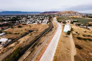 Santa Cruz Xoxocotlán, Oax. 1 de febrero. El Gobernador Salomón Jara Cruz inauguró la primera etapa de la vialidad y encauzamiento en las márgenes del Río Atoyac, infraestructura que conectará la zona de la Exgarita con el Aeropuerto Internacional de Oaxaca y permitirá reducir tiempos de traslado, además de disminuir riesgos para quienes transitan por el lugar.