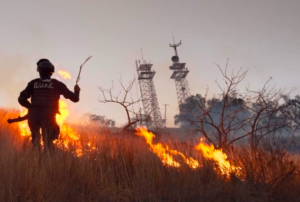 Personal del GUFE de la policía municipal y grupo de proximidad social apoyaron para sofocar un incendio de pastizales y arbustos.