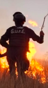 Personal del GUFE de la policía municipal y grupo de proximidad social apoyaron para sofocar un incendio de pastizales y arbustos.