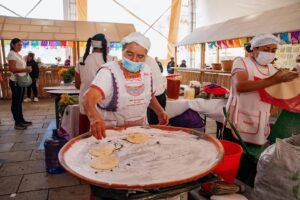 Oaxaca de Juárez, 1 de agosto. Con la participación de más de 70 mujeres productoras, la titular de la Secretaría de Turismo (Sectur Oaxaca), Saymi Pineda Velasco inauguró la XVIII Feria del Tejate y del Tamal, un encuentro que enaltece la riqueza cultural y gastronómica de la entidad, a través de dos de sus alimentos más representativos.