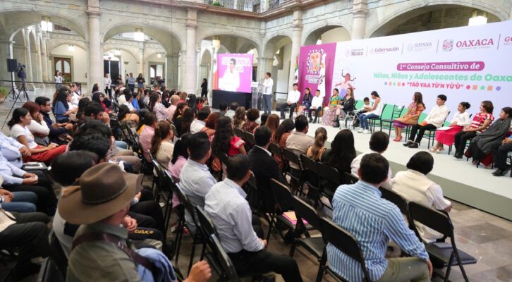 Oaxaca de Juárez, 16 de junio. En un acto que pone al centro a las nuevas generaciones, el Gobernador Salomón Jara Cruz encabezó la instalación del Primer Consejo Consultivo de Niñas, Niños y Adolescentes que se encargará de escuchar, proponer y vigilar las políticas públicas surgidas de este sector de la población en favor de sus derechos.