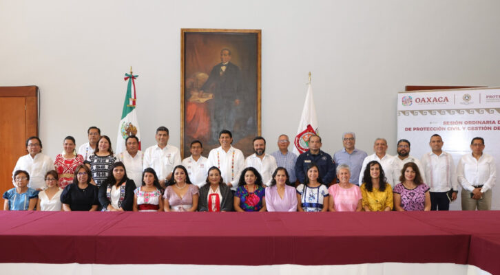 Oaxaca de Juárez, 6 de junio. Con un gran frente para responder de manera eficiente, responsable y oportuna en la salvaguarda de la vida y del patrimonio de las y los oaxaqueños ante cualquier contingencia por la temporada de lluvias y ciclones tropicales, el Gobernador Salomón Jara Cruz instaló y tomó protesta a quienes integran el Consejo Estatal de Protección Civil y Gestión de Riesgos de Oaxaca.